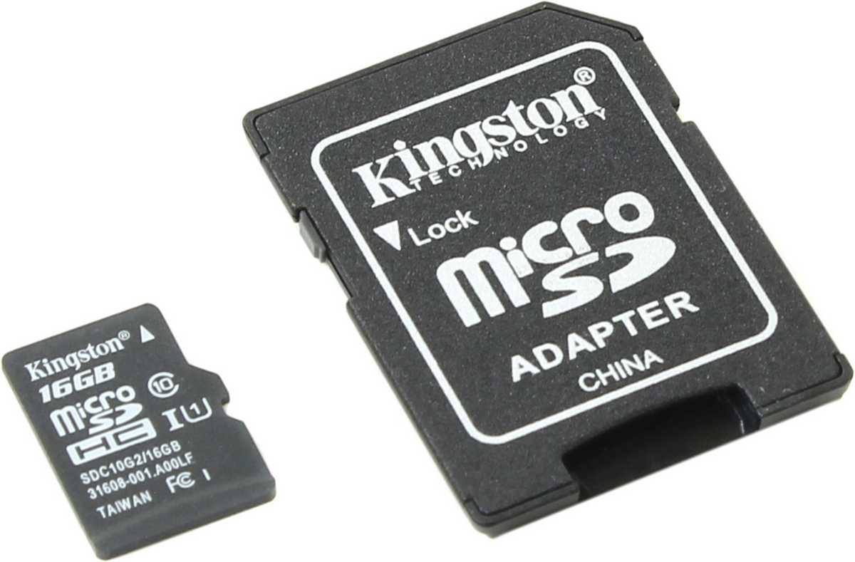 Карта памяти Kingston SDC10G2/16GB 16 Gb MicroSDHC Class 10 with SD adapter