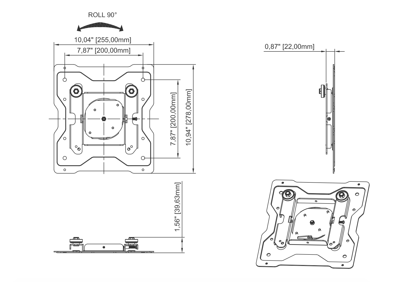 Wize Pro ADFR-UNV - адаптер VESA 200x200 для вращения панелей диагональю 32-55" из ландшафтной ориентации в портретную и наоборот, не демонтируя панель. Совместим с креплениями Wize Pro A37, P37, F37, T37, C3736A, C3760A, C36D37A, C36D60A. Выдерживает нагрузку до 91 кг.