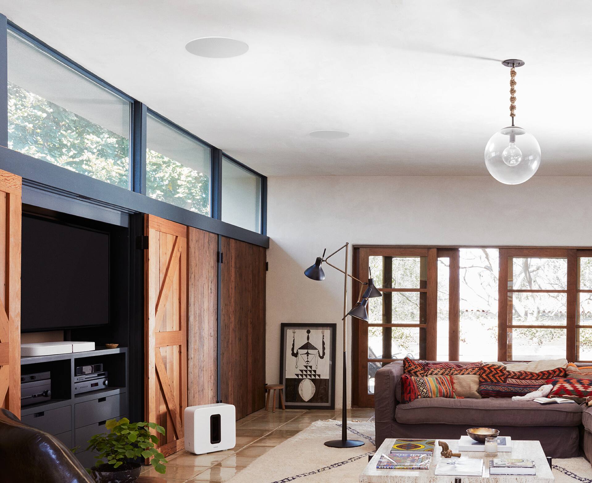 SONOS IN-CEILING BY SONANCE - архитектурные пассивные колонки из семейства SONOS Architectural by Sonance. Для работы необходим усилитель SONOS AMP (до трех пар на один усилитель). Технология настройки Trueplay адаптирует звук, учитывая размер, конструкцию и планировку помещения. Колонки монтируются в потолок. Решетку динамиков можно окрасить под цвет потолка.