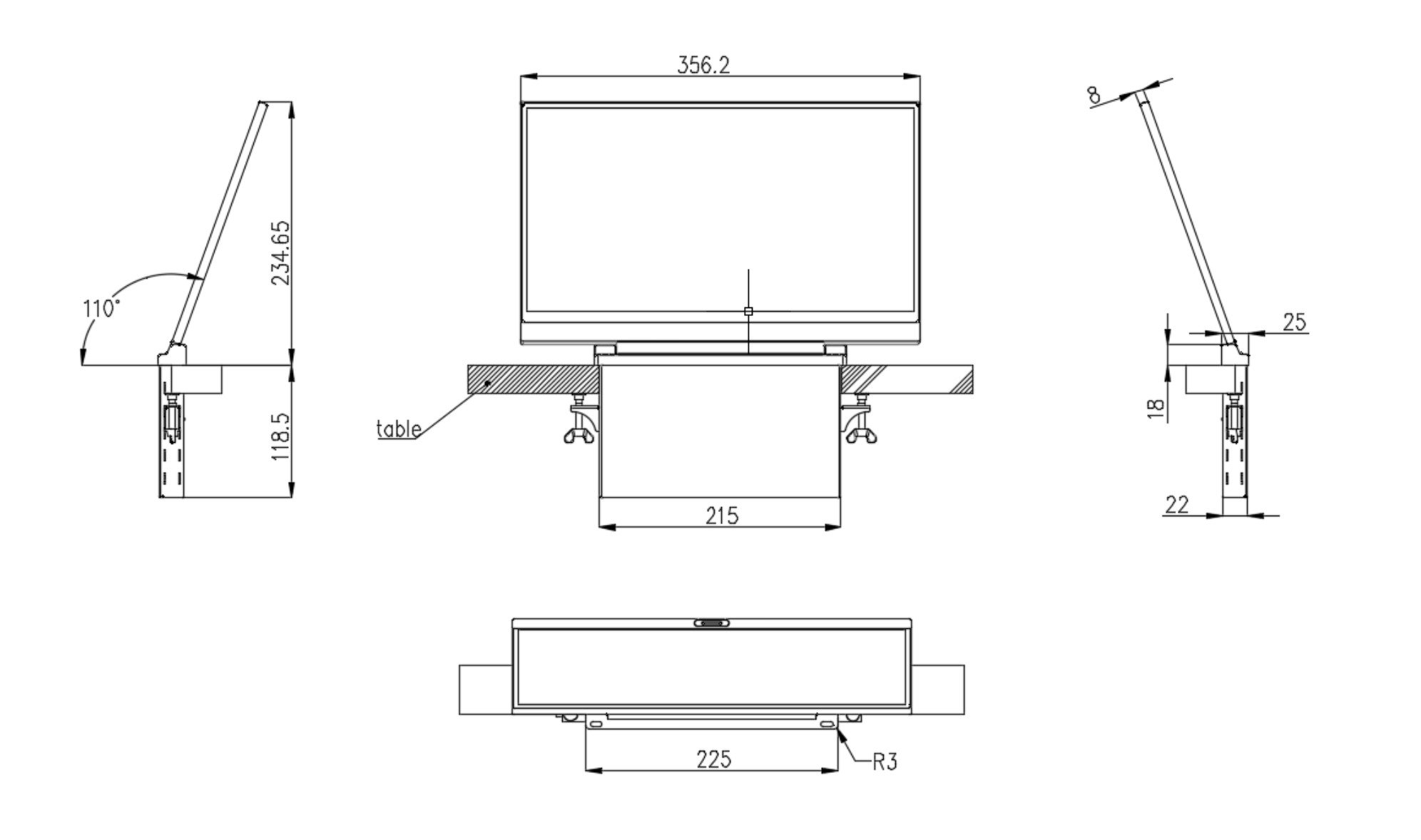Wize Helios Dusk WR-15HD black - немоторизированный настольный складной монитор серии Helios Dusk с экраном диагональю 15,6” и толщиной 8 мм. Наклон регулируется вручную в диапазоне 0-110°. Врезной монтаж позволяет полностью скрыть корпус под столешницей. Корпус выполнен из анодированного алюминия черного цвета.