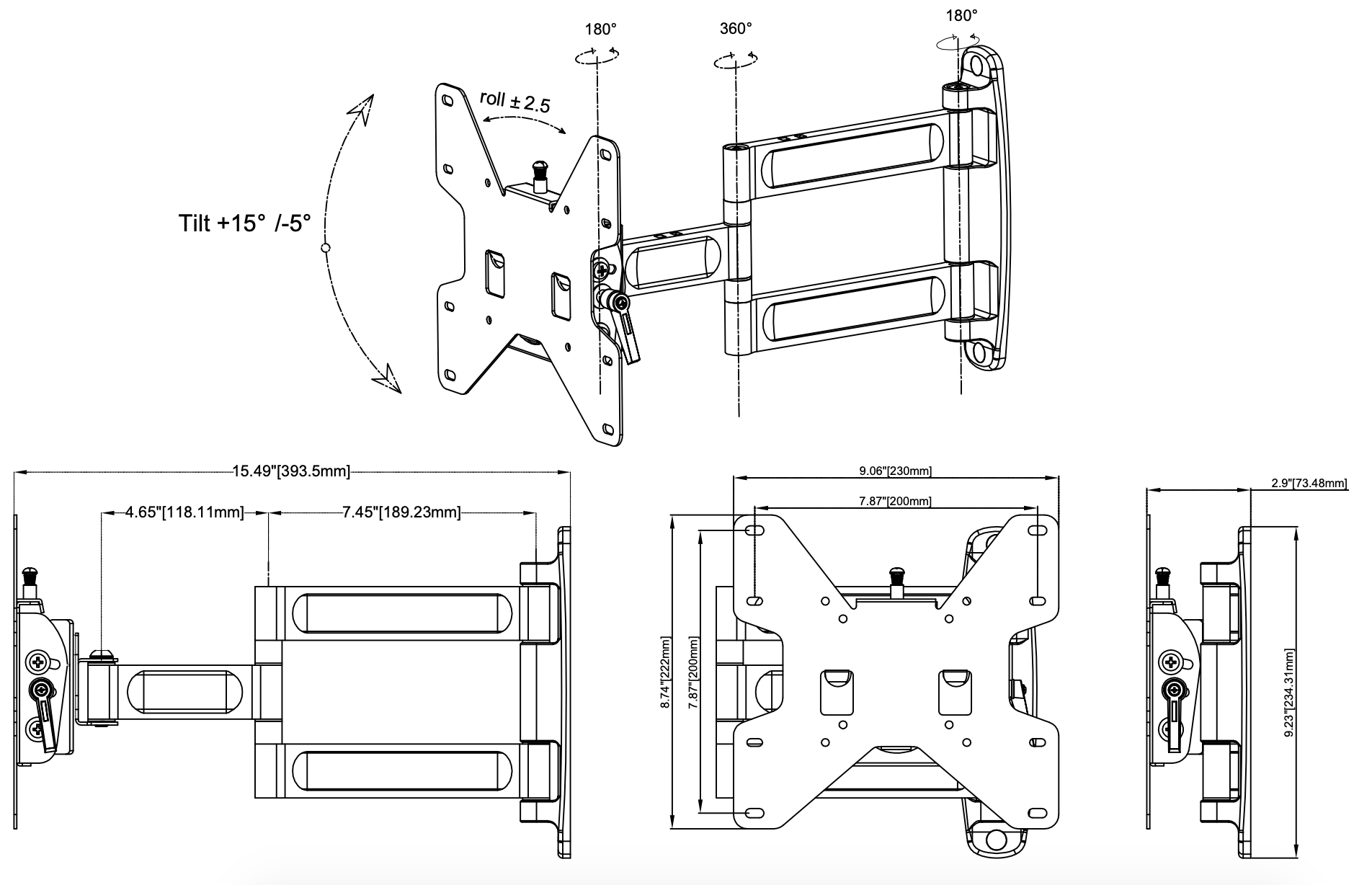 Wize Pro A37 - шарнирное настенное крепление для телевизоров, профессиональных панелей и мониторов диагональю 13-37" и весом до 36 кг. Обеспечивает регулировку наклона +15/-5°, поворот 180°, вращение +5/-5°. Совместимо с VESA 75x75, 100x100, 200x100, 200x200 мм. Позволяет установить ЖК-панели и телевизоры на расстоянии 7-39 см от стены. Кабельный канал расположен внутри колена.