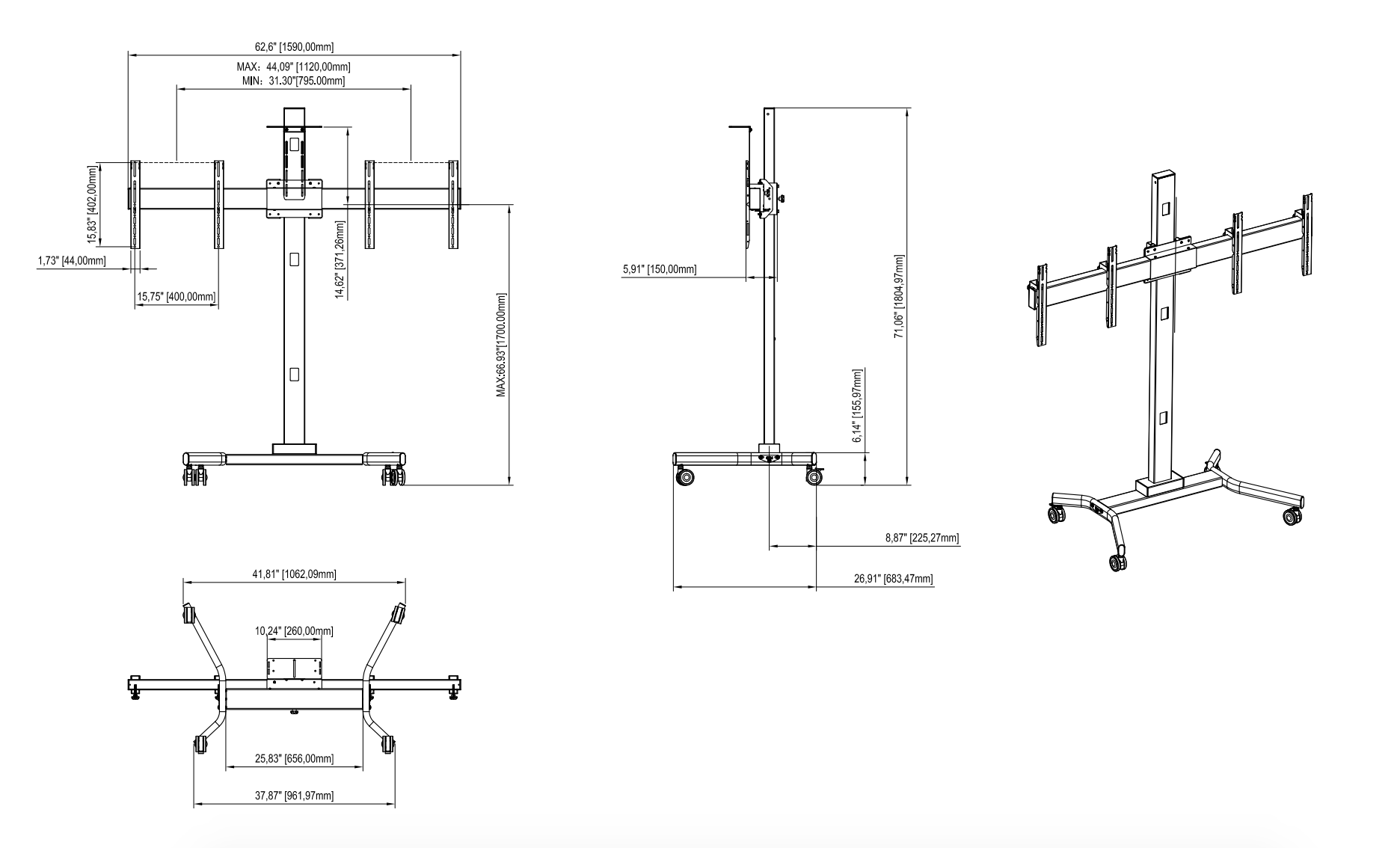 Wize Pro M263VC - мобильная стойка для видеоконференций. Система креплений предусматривает монтаж одной панели диагональю до 63" или двух - диагональю 32-46" и весом до 68 кг. Крепление обеспечивает регулировку наклона на 15° вперед и 5° назад и поворот 6°. Совместимо с VESA 75x75, 100x100, 200x100, 200x200, 300x200, 300x300, 400x200, 400x300, 400x400, 600x200, 600x400 мм. Стенд оборудован поворотными колесиками для простоты перемещения, а также универсальным креплением для камеры и внутренним кабельным каналом.