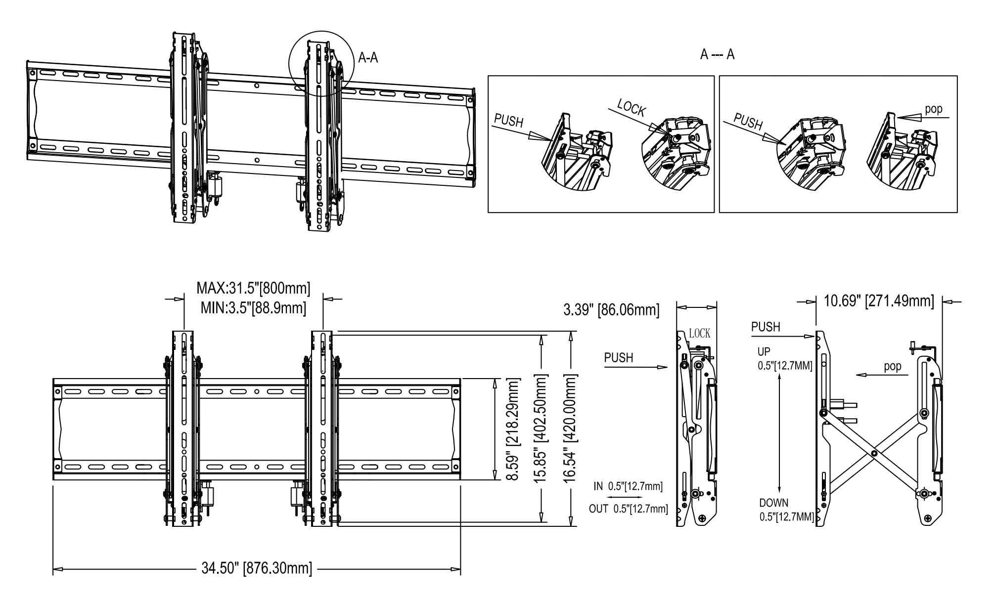 Wize Pro VW46G2 - настенное крепление для видеостен. Предназначено для панелей диагональю 37-60" и весом до 91 кг. Совместимо с VESA 200x100, 200x200, 300x200, 300x300, 400x200, 400x300, 400x400, 600x200, 600x400, 800x200, 800x400 мм. Позволяет произвести микрорегулировки после монтажа. Выдвижной механизм "Push in – Pop out" предоставляет доступ к задней части панели. Крепление оборудовано встроенным замком.