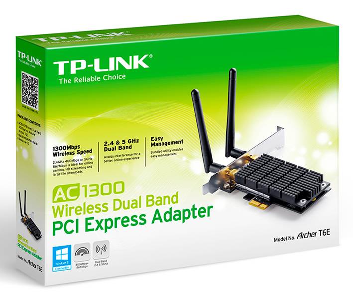 TP-Link Archer T6E - двухдиапазонный высокопроизводительный WiFi адаптер с интерфейсом PCI Express. Поддерживает стандарты 802.11a/b/g/n/ac, обеспечивает скорость соединения до 867 Мбит/с в 5 ГГц диапазоне и до 400 Мбит/с в 2.4 ГГц. Оснащен 2-мя внешними всенаправленными антеннами с высоким уровнем усиления.