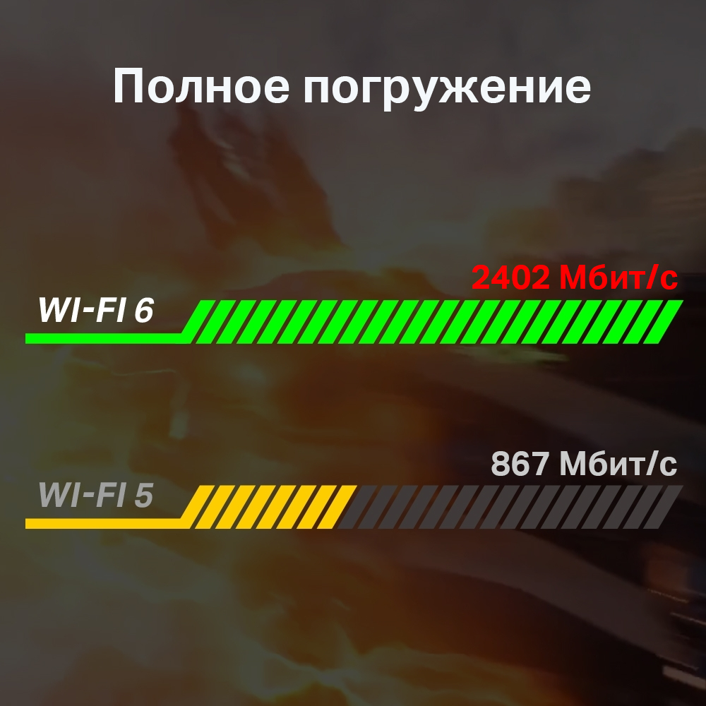 | Скороcть передачи | 5 ГГц 11ax: до 2402 Мбит/с 11ac: до 1733 Мбит/с 2.4 ГГц 11ax: до 574 Мбит/с 11n: до 300 Мбит/с 11g: до 54 Мбит/с |