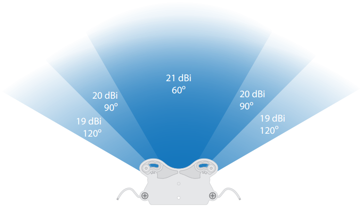 | Усиление | 17 дБи @ 60° 16 дБи @ 90° 15 дБи @ 120° |