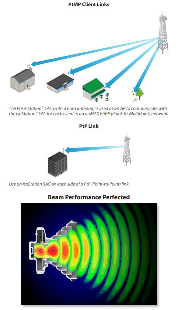 Ubiquiti Horn 5-60 - рупорная секторная антенна с усилением 16 dBi для точек доступа Ubiquiti IsoStation / PrismStation. Обеспечивает угол излучения 60° (по горизонтали и по вертикали).