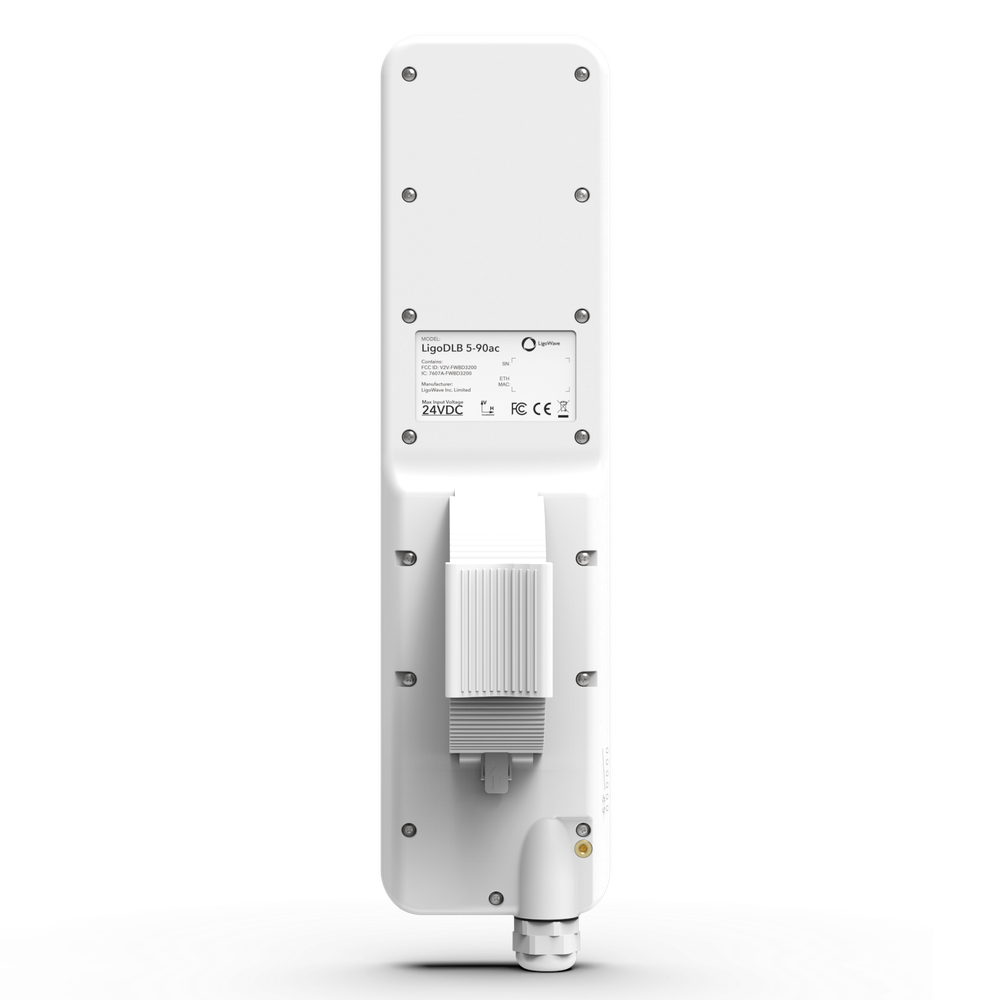 LigoWave LigoDLB 6-90AC - водонепроницаемая уличная точка доступа Wi-Fi, работающая в диапазоне 6 GHz, со встроенной секторной антенной 90° с двойной поляризацией (18 дБи) для построения высокоскоростных PtMP-сетей на коротких и средних расстояниях. Обеспечивает дальность действия до 4 километров и максимальную скорость соединения более 500 Мбит/с благодаря поддержке стандарта 802.11a/n/ac и использованию проприетарного протокола для передачи данных iPoll3. Передатчик мощностью 30 дБм. Оснащена 1 портом 10/100/1000 Mbps Ethernet с поддержкой Passive PoE 24 В. Устройство соответствует стандарту IP65.