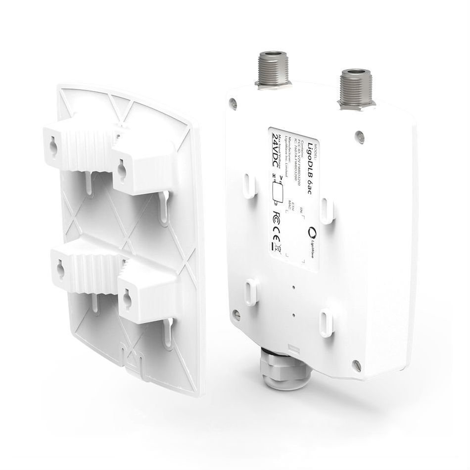 LigoWave LigoDLB 6AC - водонепроницаемая уличная точка доступа Wi-Fi, работающая в диапазоне 6 GHz, с возможностью подключения внешних антенн с разъемами N-типа. Служит для построения высокоскоростных PtP / PtMP-сетей на коротких и средних расстояниях. Обеспечивает пропускную способность свыше 500 Мбит/с благодаря поддержке стандарта 802.11a/n/ac и использованию проприетарного протокола для передачи данных iPoll3. Передатчик мощностью 30 дБм. Оснащена 1 портом 10/100/1000 Mbps Ethernet с поддержкой Passive PoE 24 В. Устройство соответствует стандарту IP65.