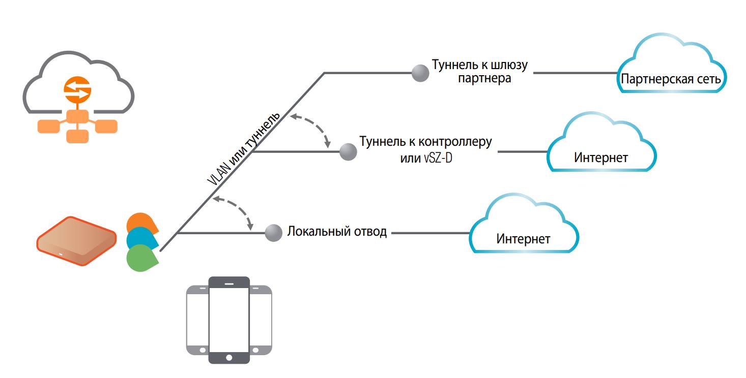 | Превосходные функции плоскости передачи данных | Зашифрованное накопление данных от сетей WLAN всех типов (адаптивный портал, 802.1x, HS2.0), VLAN, ретрансляция DHCP, прохождение NAT |