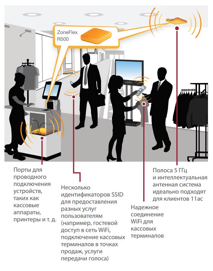 Ruckus ZoneFlex R500 Unleashed идеально подходит для беспроводных сетей, обслуживающих мобильные устройства с антеннами с двойной поляризацией, которые адаптируются в режиме реального времени при перемещении и вращении карманных устройств, что позволяет обеспечивать устойчивый уровень производительности.