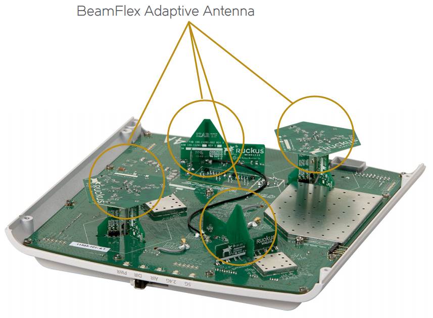 Точка доступа ZoneFlex R720 использует запатентованную компанией Ruckus технологию BeamFlex, программно управляемую антенную решетку с большим коэффициентом усиления, которая непрерывно формирует и направляет каждый пакет стандарта 802.11 по наиболее эффективному пути прохождения сигнала. ZoneFlex R720 автоматически выбирает каналы, обладающие максимальной пропускной способностью, используя технологию динамического управления каналом Ruckus ChannelFly, которая адаптируется к изменениям среды. После развертывания системы на предприятии не придется беспокоиться об обеспечении стабильной работы в условиях изменяющейся среды.