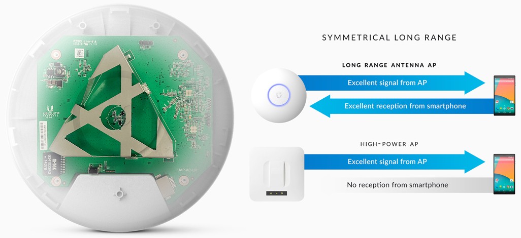 Ubiquiti UniFi AC LR AP - двухдиапазонная точка доступа класса Enterprise, обеспечивающая большой радиус покрытия и максимальную скорость соединения в 450/867 Мбит/с (2.4/5 ГГц). Поддерживает 2x2 MIMO 5 ГГц, 3x3 MIMO 2.4 ГГц, работает в стандартах 802.11a/b/g/n/ac. Поставляется в комплекте с PoE-адаптером и набором креплений на стену/потолок.