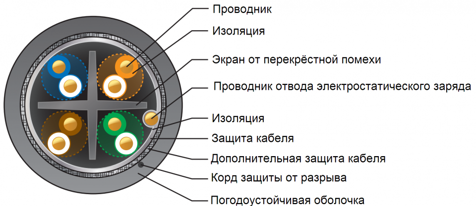 | Защита кабеля | алюминиевая фольга толщиной 0.06 мм |
