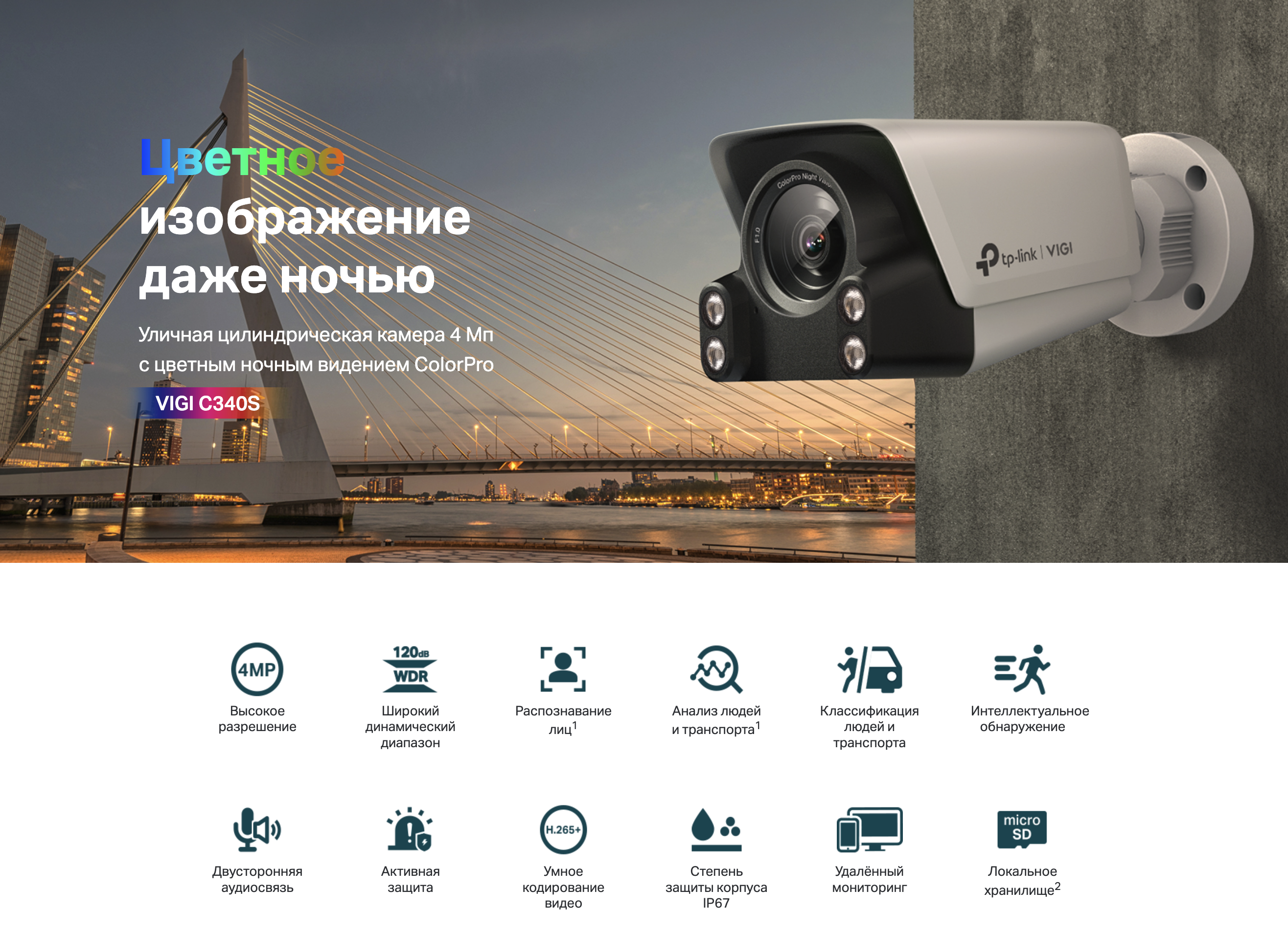 Управление камерой реализовано на базе мобильного приложения TP-Link VIGI (Android / iOS) и менеджера безопасности VIGI.