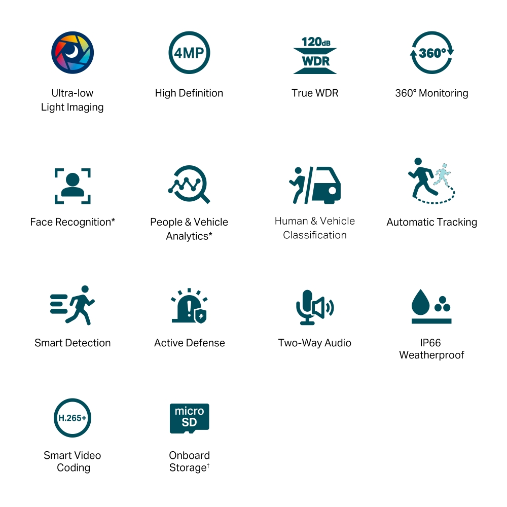 TP-Link VIGI C540S - 4-мегапиксельная поворотная камера серии VIGI с ночным видением ColorPro. Оснащена наклонно-поворотным механизмом, подсветкой белым светом дальностью действия 30 м, портом RJ45 10/100 Mbps с поддержкой PoE, слотом для карты MicroSD (до 256 ГБ) и высококачественным объективом с постоянным фокусным расстоянием 4 мм, позволяющим записывать детализированное видео с разрешением 4 MP (2688 x 1520). Изготовлена из высококачественного, термо- и износостойкого материала в соответствии со стандартом IP66, благодаря чему может использоваться как в помещении, так и на улице.