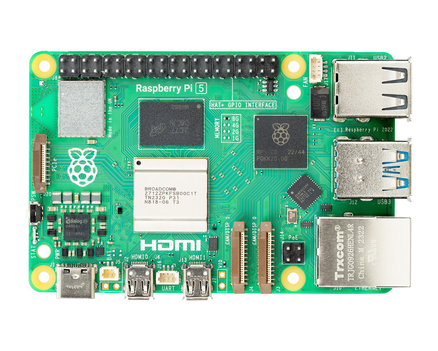 Raspberry Pi 5 8 GB - одноплатный микрокомпьютер, оснащенный 4-ядерным процессором Cortex-A76 @ 2400 МГц, 8 Гбайт оперативной памяти LPDDR4, встроенным GPU, модулями Ethernet 10/100/1000 Мбит/с, 2-диапазонным модулем WiFi 5 (802.11b/h/n/ac), BLE 5, 2-мя портами USB-A 3.0 и 2-мя портами USB-A 2.0, 2-мя интерфейсами micro-HDMI (поддерживают разрешение до 4K @ 60 FPS), интерфейсами UART, SPI, I2C, GPIO и слотом для карт microSD.