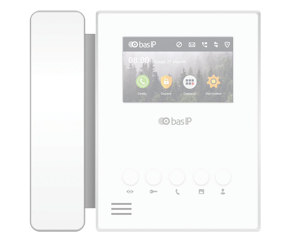 BAS-IP AU-04LA WHITE - IP-видеодомофон, оснащенный 4.3" экраном с разрешением 480 x 272, встроенной камерой и слотом для карт формата SD. Выполнен в корпусе из пластика, предусматривающим настенный накладной монтаж. Может подключаться к 10 вызывным панелям в многоквартирных домах и/или к 9 индивидуальным вызывным панелям, может управлять домашней автоматикой (свет, шторы, лифт). Предусматривает подключение дополнительной трубки SP-AU.