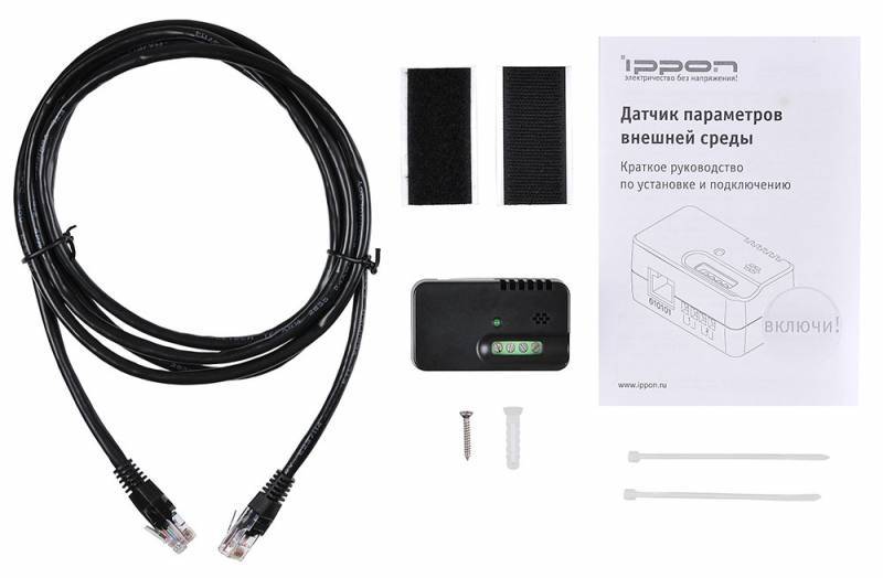 IPPON 769708 - датчик мониторинга окружающей среды, позволяющий накапливать результаты измерений температуры и влажности, а также осуществлять дистанционный контроль мониторинга окружающей среды. Поддерживает контроль состояния двух устройств. Контроль осуществляется с помощью веб-браузера. Для крепления датчика используется крепление на «липучках» или поставляемые винты. Датчик МОС также оснащен универсальным разъемом на задней стенке для крепления на винте в любом положении. Подключается к карте SNMP сетевым кабелем CAT.5E, и может быть удален от нее на расстояние до 2 м.
