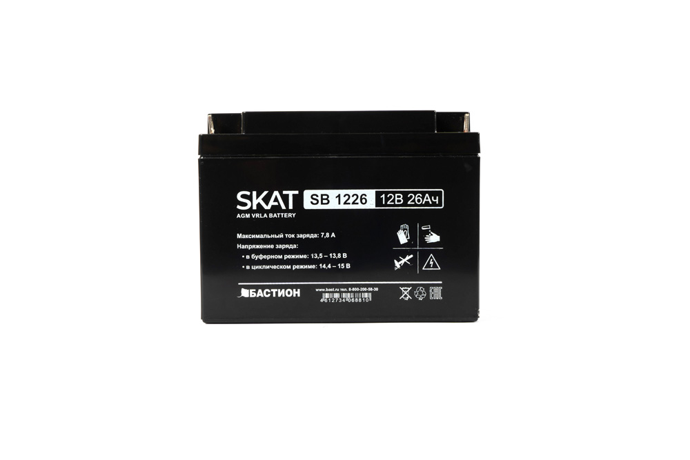 Бастион SKAT SB 1226 - необслуживаемая, герметичная, свинцово-кислотная батарея. Тип клеммы B1 (под болт М5 с гайкой). Ожидаемый срок службы - 6 лет.