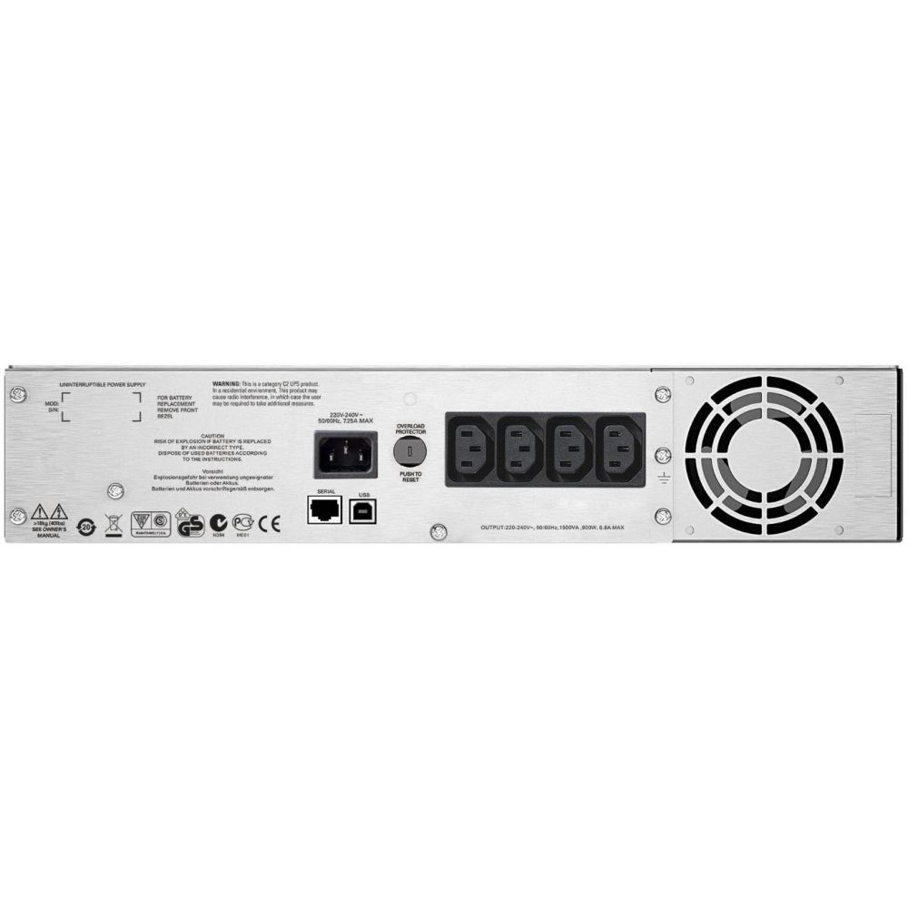 APC Smart-UPS C SMC1500I-2U - линейно-интерактивный ИБП в рэковом 19" исполнении (2U), обеспечивающий выходную мощность 1500 ВА (900 Вт), оснащенный 4-мя розетками типа C13 и 2-мя выходами IEC Jumpers. Обеспечивает время переключения на питание от батарей за 2 мс, автоматически ступенчато регулирует напряжение для корректной работы подключенного оборудования. Оснащен интерфейсами USB и RJ45 для удаленного управления.