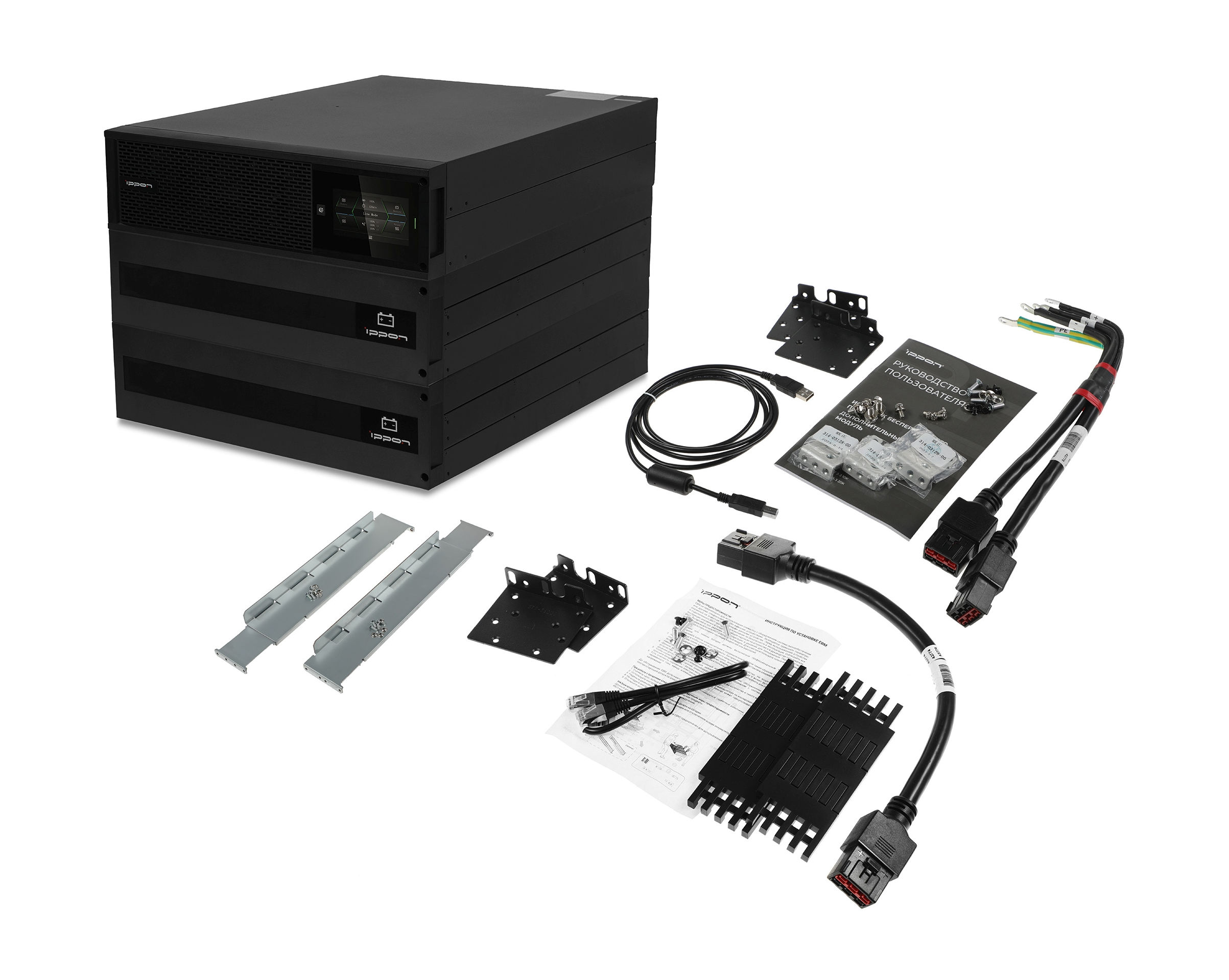 Ippon Innova Unity RT 3-3 20K (1445985) - трехфазный источник бесперебойного питания мощностью 20000 VA типа On-Line (с двойным преобразованием входного напряжения). Обеспечивает защиту для серверных и телекоммуникационных систем и другого оборудования. Предусматривает монтаж в 19" стойку и вертикально на ножках (крепления входят в комплект поставки).