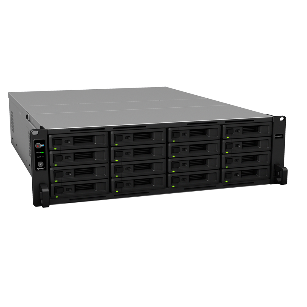 Synology RackStation RS2818RP+ - сетевой накопитель (NAS) в стоечном 3U исполнении с 16-ю дисковыми отсеками SATA. Обеспечивает возможность масштабирования до 28 дисков при подключении к одному модулю расширения Synology RX1217/RX1217RP. Поддерживает HDD и SSD 2.5 и 3.5", RAID уровней Synology Hybrid RAID (SHR), Basic, JBOD, RAID 0, RAID 1, RAID 5, RAID 6, RAID 10, "горячую" замену дисков. Оснащен 4-мя гигабитными сетевыми интерфейсами RJ45, 2-мя портами USB 3.0, слотом PCIe 3.0 для подключения сетевой карты 10GbE.