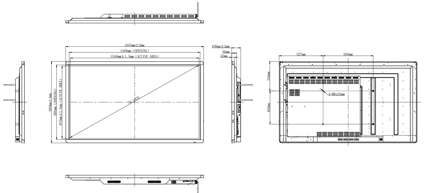 | Экран | 70", LED, 4K Ultra HD, распознавание до 20 одновременных касаний, соотношение сторон 16:9, яркость 350 cd/m2, контрастность 4000:1, время отклика 8 мс, защитное 4 мм и антибликовое покрытие |