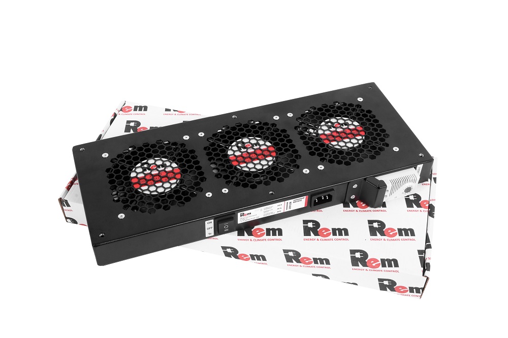 ЦМО R-FAN-3T-9005 - вентиляторный модуль для установки в настенные и напольные шкафы и стойки. Предназначен для отвода или нагнетания воздуха шкафы. Используется для установки в подготовленное отверстие (крыша/дно) в настенных и напольных телекоммуникационных шкафах (ШРН, ШРН-Э, ШРН-М, ШРН-С, ШТК-М, ШТК-С, ШТВ и EMS). Модуль оснащен тремя односкоростными, осевыми вентиляторами с изменением направления потока (направление потока указан на этикетке стрелкой) и терморегулятором. Порог включения задается в пределах от 0 до 60⁰ С, порог выключения - понижение температуры на 7⁰С от заданной. Питание подается через разъем IEC 320 C14.
