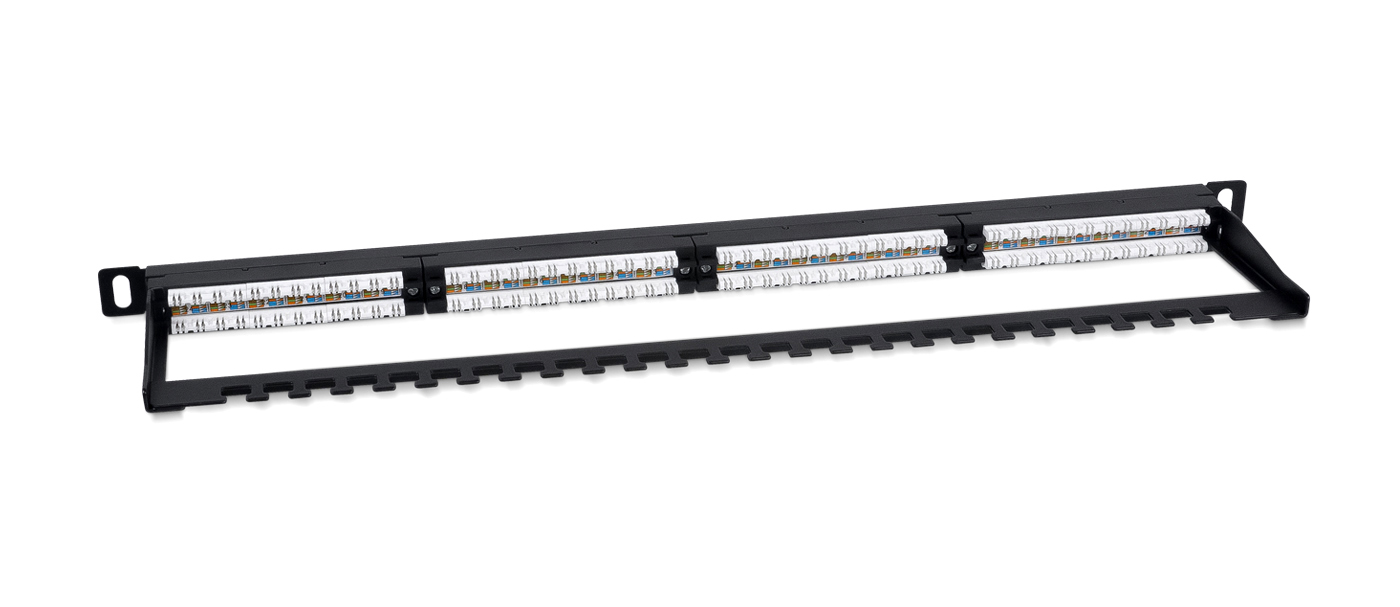 Cabeus PLHD-24-Cat.6a-Dual-180-0.5U (9665c) - 24-портовая патч-панель категории CAT.6A высокой плотности. Выполнена в рэковом конструктиве 19" высотой 0.5U. Оснащена задним кабельным органайзером.