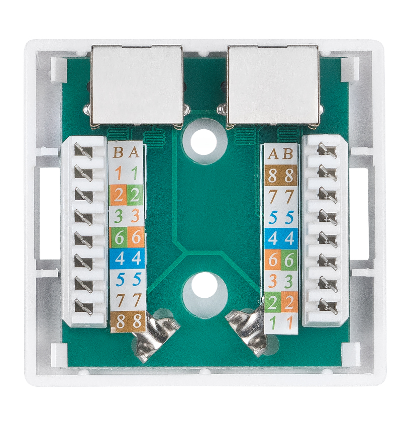 Cabeus WS-8P8C-Cat.6-SH-2 (7989c) - экранированная настенная сетевая розетка категории CAT.6 с двумя портами RJ45.