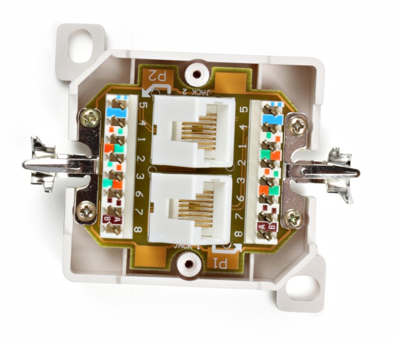 Hyperline SB-GTS2-8P8C-C6-WH - настенная, двойная, сетевая розетка RJ45 категории CAT.6.