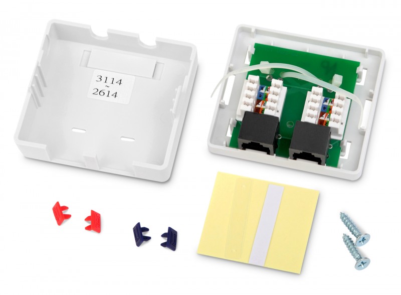 Hyperline SB2-2-8P8C-C6-WH - настенная, двойная сетевая розетка RJ45 категории CAT.6.