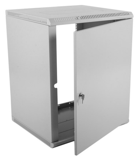 ЦМО ШРН-Э-15.500.1 - 19", настенный, разборный, телекоммуникационный шкаф высотой 15U и глубиной 520 мм. Дверь изготовлена из металла.