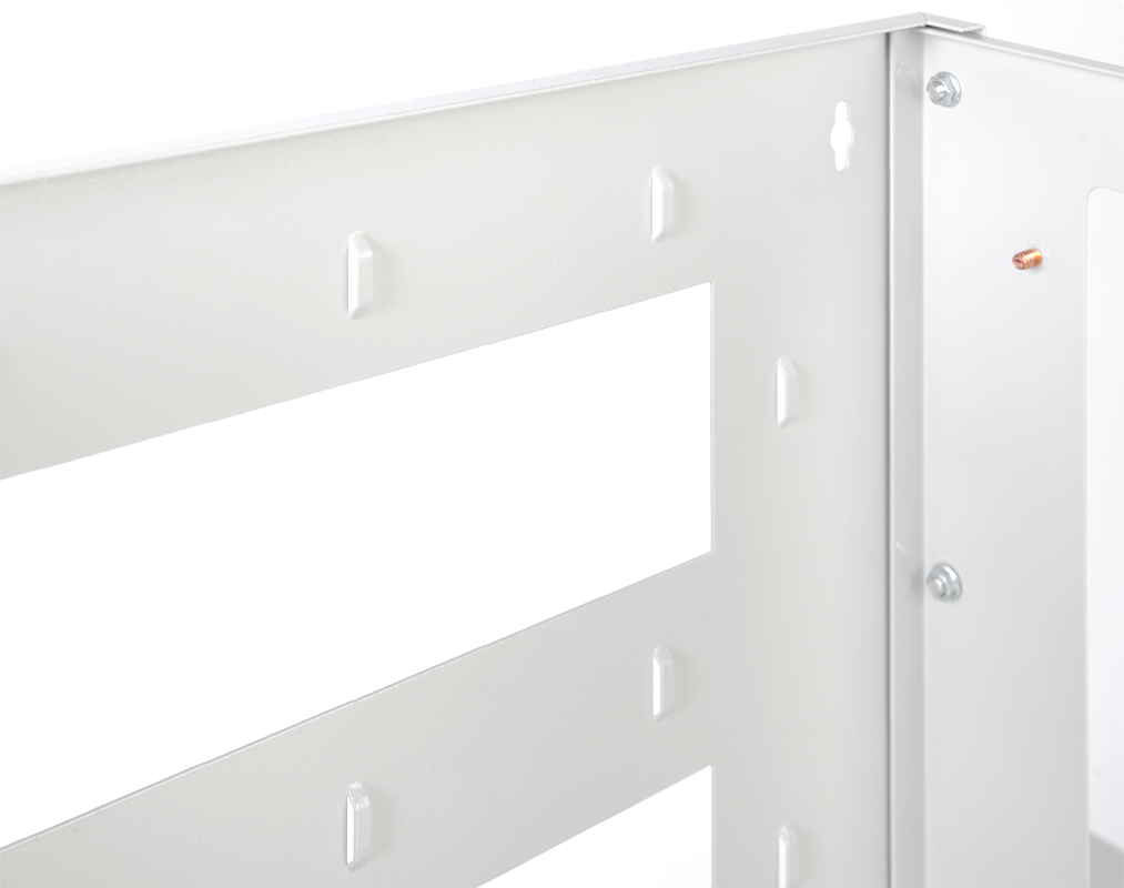 ЦМО КНО-М-6U - настенный телекоммуникационный кронштейн 19" высотой 6U. Предназначен для открытого размещения малого количества активного и пассивного телекоммуникационного оборудования. Конструкция полностью разборная, состоит из 5 элементов. Кронштейн прост в сборке, для удобства монтажа и коммутации оборудования в задней и боковых стенках предусмотрены технологические окна. Боковые стенки регулируются по глубине от 300 до 450 мм. Предусмотрено надежное крепление кронштейна к стене, через отверстия в задней стенке. Для удобной фиксации коммутационного кабеля в комплект поставки входят самоклеящиеся площадки для крепления стяжек и комплект кабельных стяжек. Предусмотрена система заземления.