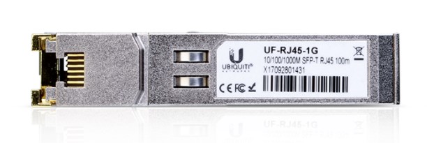 Ubiquiti UF-RJ45-1G - модуль SFP, позволяющий подключить через оптический порт сетевого устройства медный кабель RJ45. Обеспечивает скорость передачи данных до 1.25 Гбит/с. Совместим с большинством SFP-устройств различных производителей.