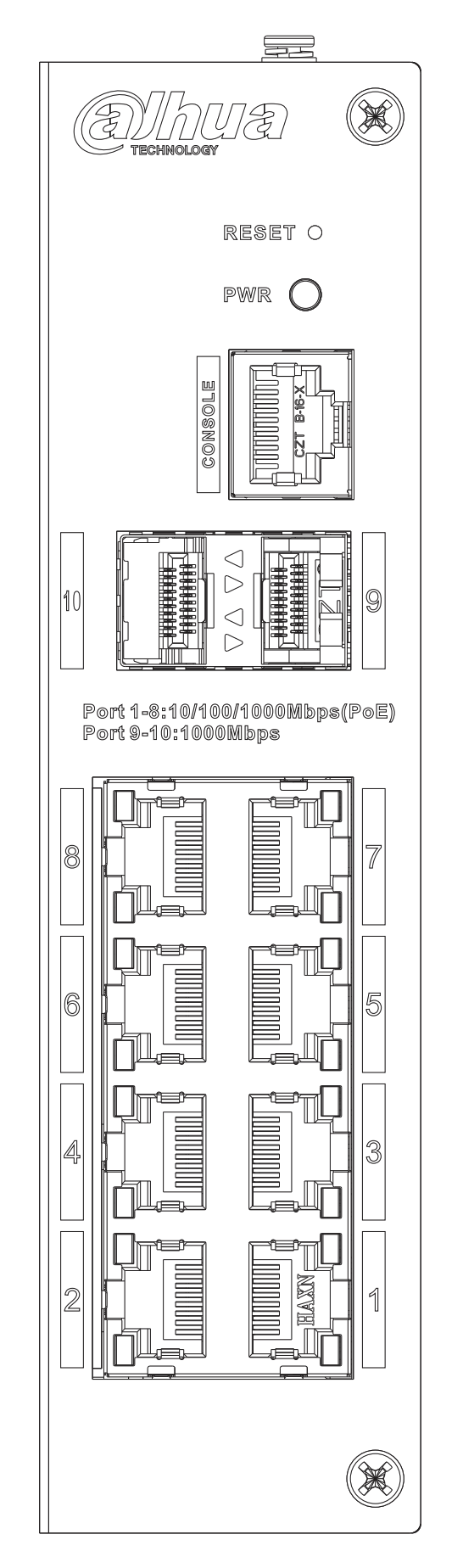 Dahua DH-HS4210-8GT-110 - гигабитный 10-портовый (8 x RJ45 1G + 2 x SFP 1G) L2 коммутатор с поддержкой PoE++ (802.3af/at/bt; 2 порта поддерживают PoE 90 W; общий бюджет - 110 Вт). Коммутатор поддерживает PoE Watchdog, передачу питания на расстояние до 250 метров, STP/RSTP, LLDP, IGMP, QoS. Конструктивно предусматривает монтаж на DIN-рейку. Функционирует в диапазоне температур от -30 до 65 °C.