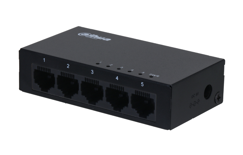 Dahua DH-PFS3005-5GT - настольный неуправляемый коммутатор, оснащенный 5-ю портами RJ45 1 Gbps. Выполнен в металлическом корпусе.
