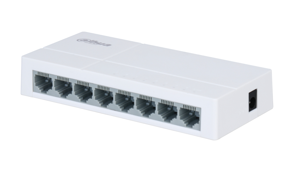 Dahua DH-PFS3008-8ET-L - настольный неуправляемый коммутатор, оснащенный 8-ю портами RJ45 10/100 Mbps. Выполнен в пластиковом корпусе.