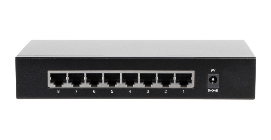 Dahua DH-PFS3008-8GT - настольный неуправляемый коммутатор, оснащенный 8-ю портами RJ45 1 Gbps. Выполнен в металлическом корпусе.
