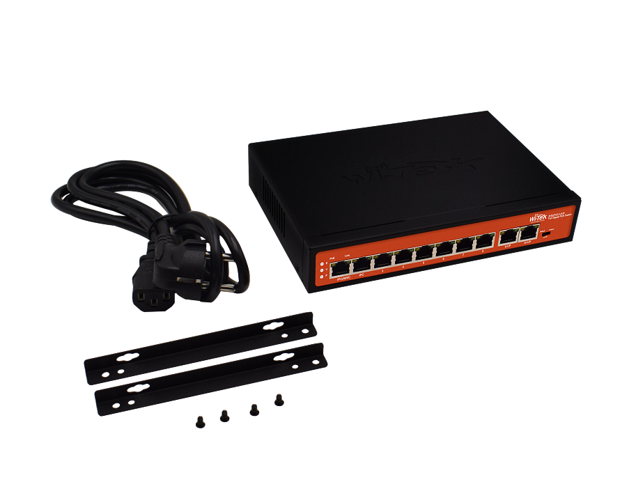 Wi-Tek WI-PS308G (v2) - настольный, неуправляемый, гигабитный коммутатор, оснащенный 10 портами RJ45 10/100/1000 Mbps, 7 из которых поддерживают PoE 802.3af/at и 1 - PoE 802.3bt. Обеспечивает бюджет PoE до 120 Вт, мощность на порт 802.3 af/at до 30 Вт, на порт 802.3bt - до 60 Вт. Поддерживает режим VLAN, передачу PoE на 250 м, функцию Watchdog (контроль зависания IP-камер и другого оборудования). Оснащен внутренним бесшумным блоком питания.