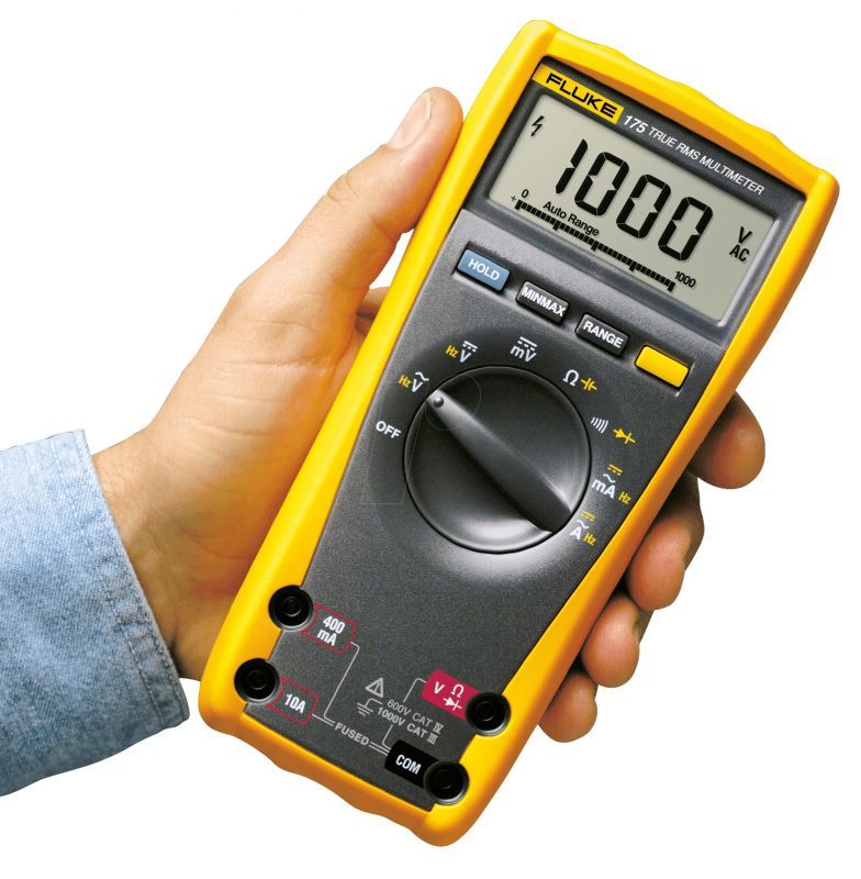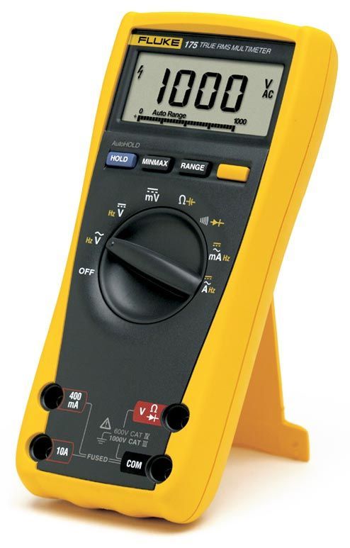 Fluke 1592901 175 - широкодиапазонный мультиметр общего назначения. Обеспечивает измерение частоты, емкости, сопротивления, прозвонку цепей и режим тестирования диодов. В режиме измерения переменного тока и напряжения определяет их истинное среднеквадратическое значение. Позволяет определять среднюю величину в серии измерений, не выполняя специальных расчетов. Благодаря режиму AutoHOLD каждое устойчивое значение замеряемого параметра автоматически удерживается на дисплее до регистрации его нового уровня с оповещением звуковым сигналом. Оснащен дисплеем без подсветки.