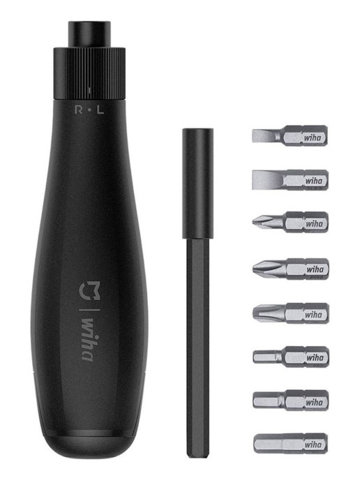 Xiaomi Mi x Wiha BHR4007GL - реверсивная отвертка, оснащенная системой хранения бит в рукоятке. Комплектуется 8-ю битами типов PH1, PH2, PH3, H4, SL6,5, SL4, H5 и удлиннительным рычагом.