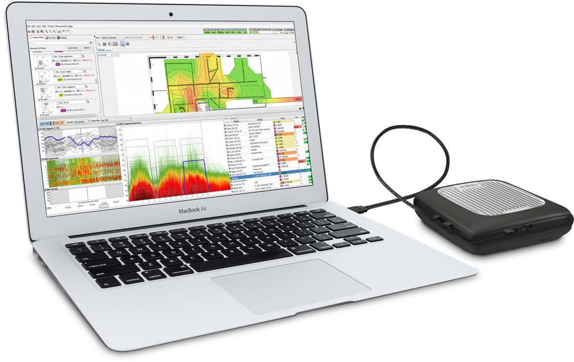 Ekahau Sidekick - диагностический и измерительный прибор, предназначенный для тестирования сетей Wi-Fi (стандартов 802.11a/b/g/n/ac/ax). Оснащен максимально быстрым спектральным анализатором (выполняющим от 4 до 10 измерений в секунду), 7-ю всенаправленными антеннами высокой чувствительности, встроенным аккумулятором на 6400 mAh и накопителем SSD 128 Gb.