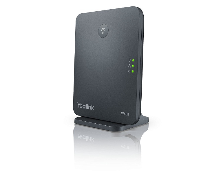 Yealink W60B - базовая станция IP-DECT. Обеспечивает возможность подключения до 8 беспроводных устройств при радиусе действия до 50 метров в помещении и до 300 метров на открытом пространстве. На станции возможна регистрация до 8 SIP-аккаунтов и до 8 одновременных разговоров. Для обеспечения более широкого покрытия сигнала, можно использовать до 6 DECT-репитеров. Поддерживается питание по PoE. Возможно восстановление программного обеспечения при любом сбое.