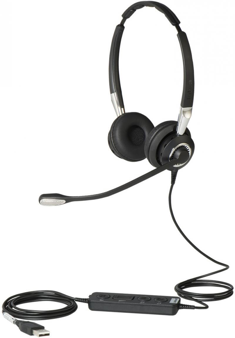 Jabra BIZ 2400 II USB Duo UC CC - профессиональная проводная стереогарнитура для колл-центров, оснащенная интерфейсом USB для подключения к ПК и стандартным UC-софтфонам, динамиками класса HD, микрофоном с шумоподавлением и специальными фильтрами Air shock, которые устраняют шум дыхания и треск. Технология PeakStop™ обеспечивает защиту органов слуха от резких громких звуков, отфильтровывая любой звук громче 118 дБ. Гарнитура имеет легкую и надежную конструкцию: съемная мягкая отделка оголовья, амбушюр выполнен из мягкой искусственной кожи, кабель усилен армирующим волокном, штангу микрофона можно поворачивать на 360 градусов, не опасаясь сломать. Для удобства управления на шнуре гарнитуры расположен блок с кнопками ответа на вызов и контроля звука.