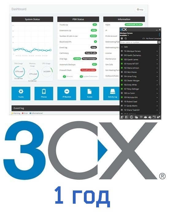 3CX Phone System Enterprise 16SC Annual 1 Year - годовая лицензия на программную IP-АТС класса Enterprise для платформ Windows / Linux. Поддерживает неограниченное количество абонентов, до 16 одновременных вызовов, функции многоуровневого автосекретаря, маршрутизации вызовов DID, общую книгу контактов, запись разговоров, очереди и группы вызовов, парковку и перехват вызовов и т. д. Лицензия уровня Enterprise поддерживает установку нескольких экземпляров 3CX на нескольких серверах или виртуальных машинах для обеспечения отказоустойчивости и бесперебойной работы системы. 3CX легко интегрируется с рядом популярных CRM и PMS-систем, поддерживает web-конференции (до 250 участников) на базе WebRTC.