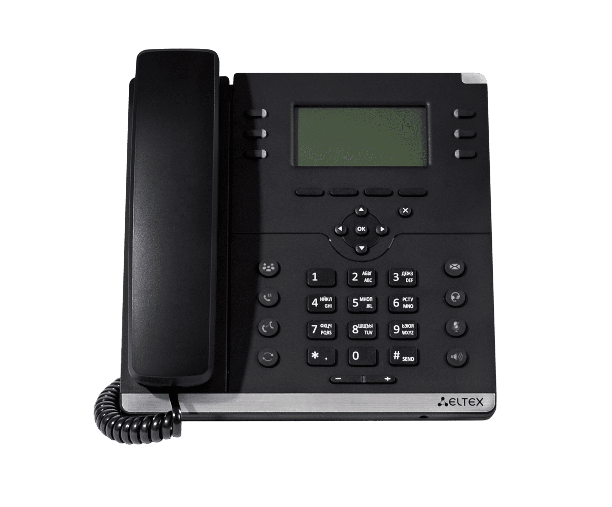 Eltex VP-15 - SIP-телефон, оснащенный 2-мя портами RJ45 и информативным экраном. Поддерживает 2 SIP-аккаунта с независимой настройкой.
