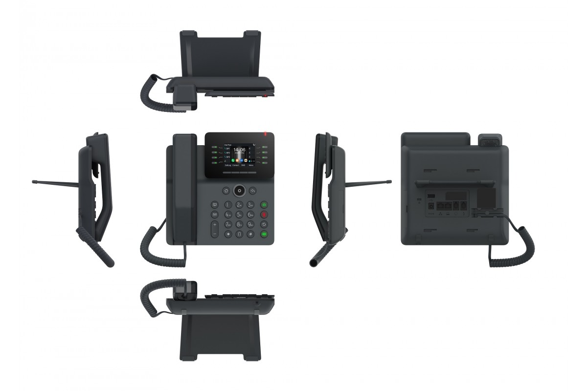 Fanvil V63 - IP-телефон с поддержкой 6-ти SIP-аккаунтов. Оснащен цветным 2.8" экраном, 2-мя портами RJ45 10/100/1000 Mbps с поддержкой PoE, 2-мя портами USB 2.0 для подключения Wi-Fi и Bluetooth адаптеров. Аппарат обеспечивает звук HD-качества.