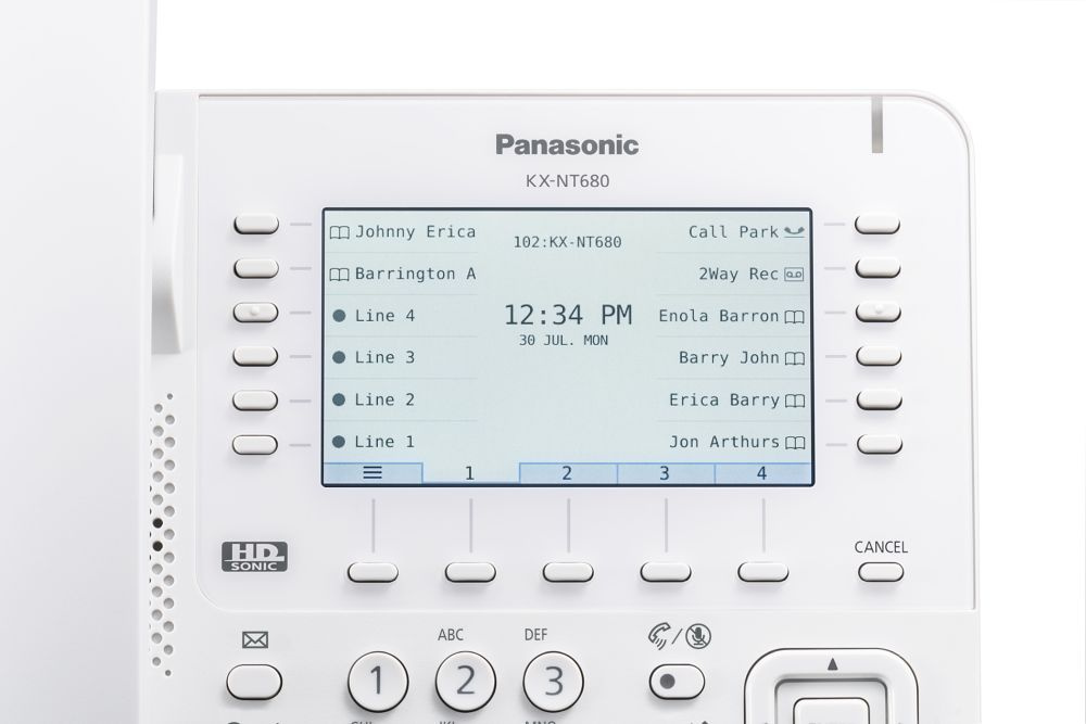 Panasonic KX-NT680RU - IP-телефон с цветным 4.3" экраном с разрешением 480×272, 48 программируемыми кнопками (4 страницы по 12 кнопок), двумя гигабитными портами Ethernet с поддержкой PoE, Bluetooth для гарнитуры. Аппарат обеспечивает звук HD-качества. Совместим с IP-АТС Panasonic серий KX-NS и KX-NSX. Блок питания не входит в комплект поставки.